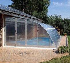 Užijte si koupání o několik měsíců déle. Oblouková teleskopická konstrukce má vynikající termoizolační vlastnosti. Díky speciálně navrženému bezpečnostnímu systému kolejiště je otevírání i zavírání bazénu snadné a rychlé.
