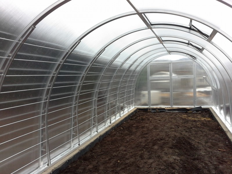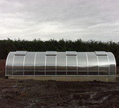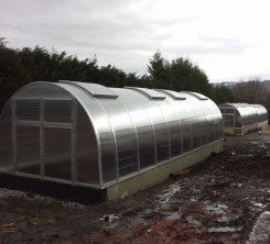 Tři farmářské skleníky o velikosti 3,5 x 11 x 2,3 m .